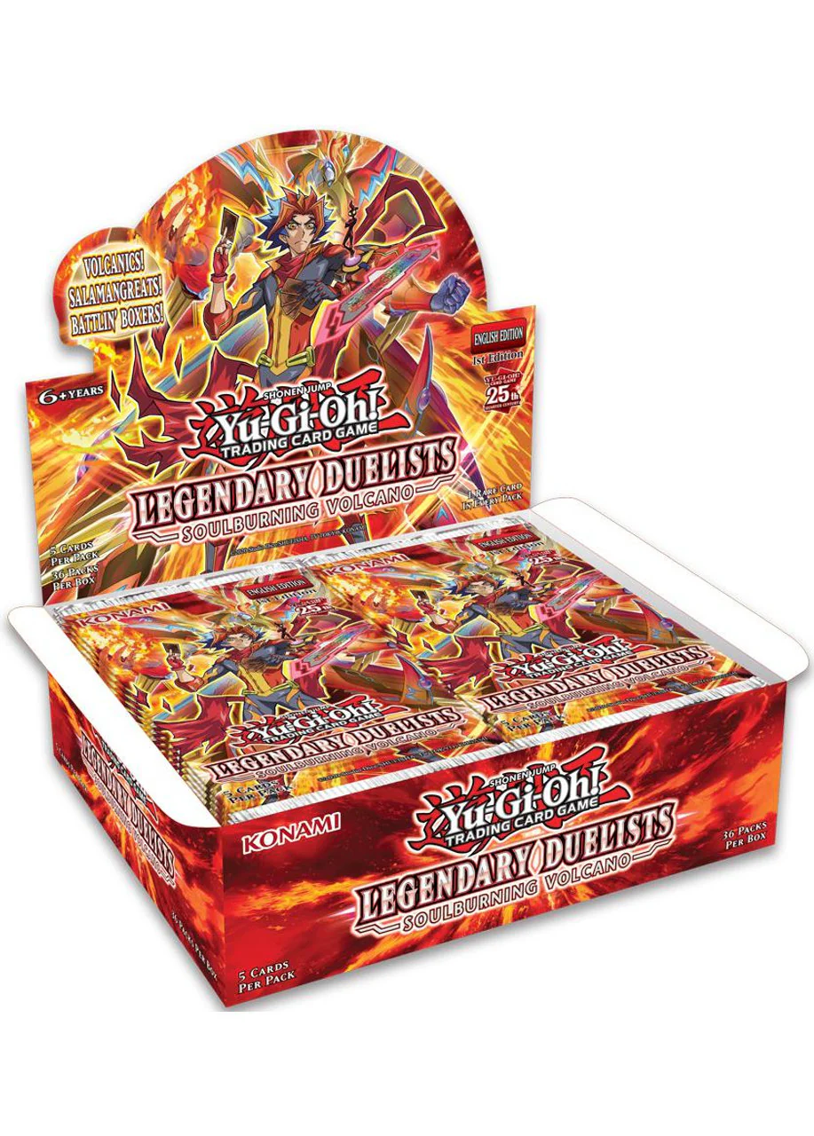 YUGIOH Legendary Duelists: Soulburning Volcano Booster Box for 18+ collectors. Konami magma. Comply pyro laws. No flare-ups. Local vent.